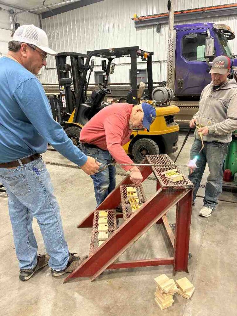 The work consisted of cutting bases, branding Lions Emblems on wood, and sanding smooth. They produced 367 bases which will hold the flags donated to First graders..
